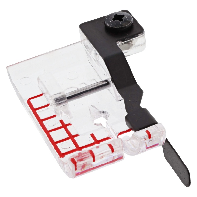 The Clear View 1/4″ Seam foot is used to control your fabric while piecing. Most quilters prefer to use this foot with the Straight Stitch Needle Plate. The small single hole in the plate and the foot ensures the most control over your fabric possible and the least risk of threads or fabric getting caught in the feed dogs. The Clear View foot works specifically with that place to achieve a perfect 1/4″ seam.