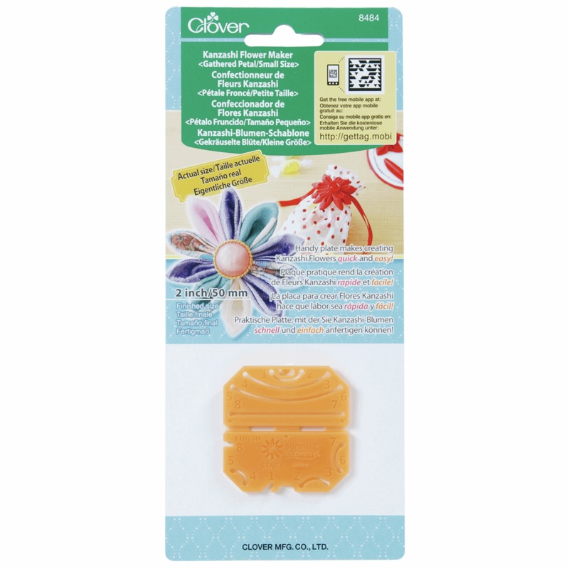 Kanzashi is traditional Japanese art form of folding and stitching fabric petals. This handy plate makes creating these flowers quick and easy. Make one petal using the Kansashi maker and then string more petals together to make a complete flower. Add more petals or adornments to make unique flower creations.