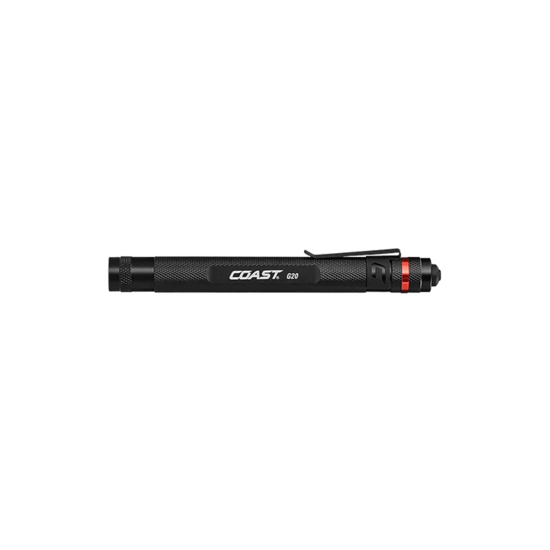 Stay ready to spotthe details. The G20 penlight featuresCOASTslegendary Inspection Beam, prized for its perfect circle of detail-revealing, anti-glare light. No wire, connection, or leak can hide. With a beam length of 21meters(68feet)and run time of 11hours, this single-mode sidekick features a steel pocket clip and weighs less than 3 ounces for easy carry.