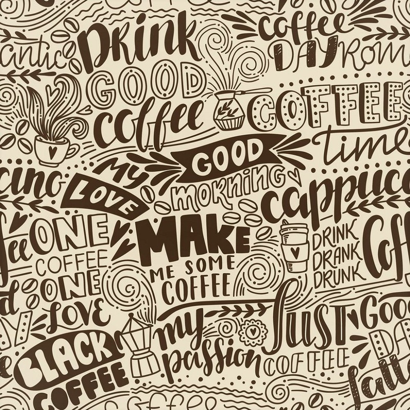 Coffee Quotes Fabric – Brown Quilting Cotton Yard – 36″ x 45″