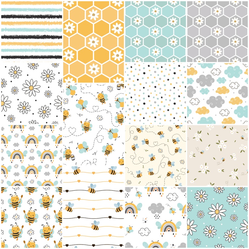 Cute Bees Layer Cake – 15 Pieces Quilting Cotton