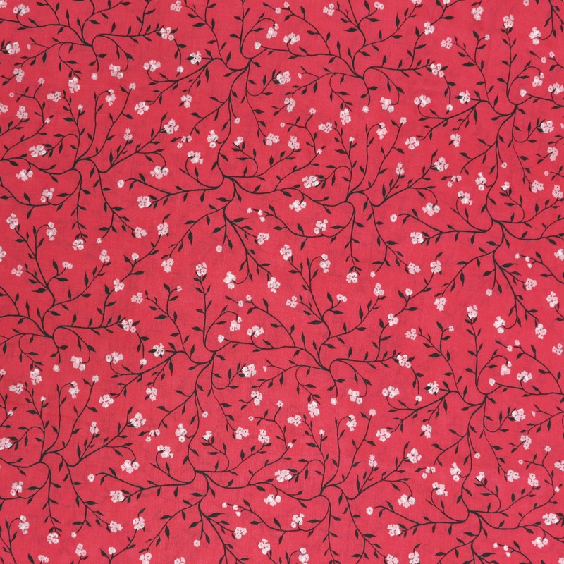 Bring a touch of painterly charm to your wardrobe with the Dancing Florets Rouge fabric, a stunning design by Katarina Roccella for the Plentiful collection. Measuring approximately 54″ wide and made from 100% rayon, this fabric features delicate, hand-painted black branches adorned with petite blush florets, all set against a vibrant rouge backdrop. The lively, flowing print captures the spirit of wandering through a blooming florist’s shop, where watercolor botanicals and citrus hues ignite creativity and joy in every stitch.