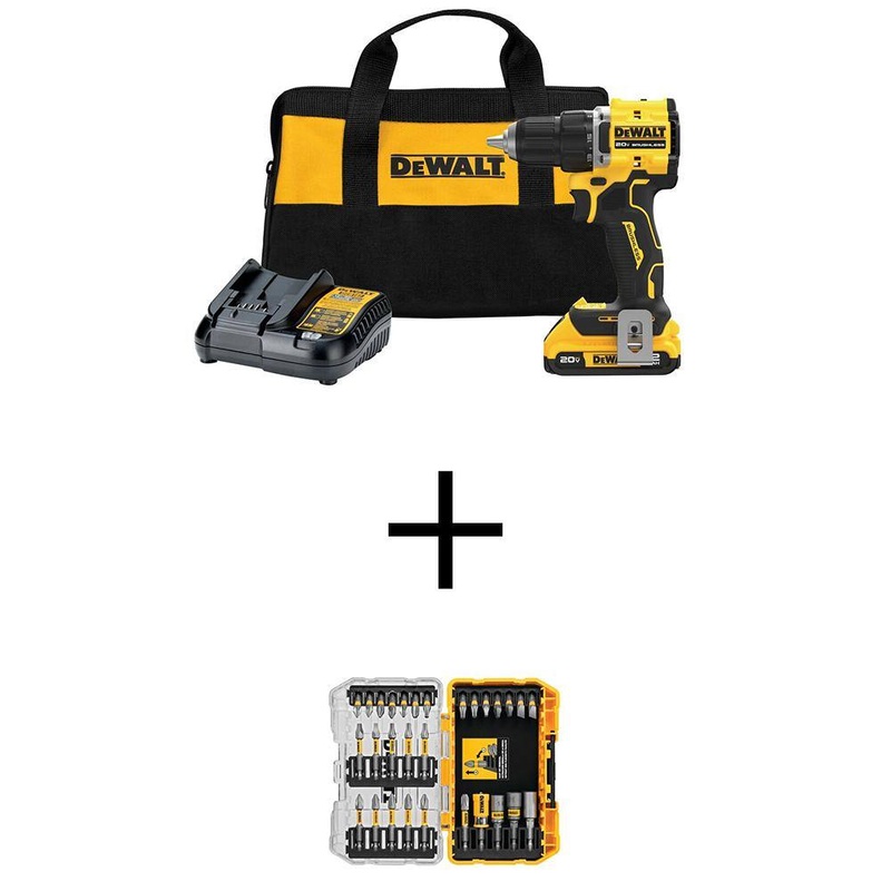 DEWALT DCD794D1WWAMF30 ATOMIC 20V Lithium-Ion Cordless Compact 1/2 in. Drill/Driver Kit and Screwdriving Set (30-Pc) w/2Ah Battery and ChargerUnlock power in a compact size with the ATOMIC COMPACT SERIES 20V MAX 1/2 in. Drill/Driver. Get up to 16% more power for a variety of drilling applications in tight spaces with our shortest 20V MAX Drill/Driver (tool head length only). The LED work light illuminates small spaces to optimize productivity on the job site. DEWALT MAX screw driving bits DWAMF30 are engineered for use with Impact Drivers.Our shortest 20-Volt MAX drill/driver at 5.88 in. (tool head length only) to access hard to reach areasGet up to 16% more power for a variety of drilling applicationsHigh bit retention with 1/2 in. ratcheting chuckUnlock power in a compact size with 404 UWO and up to 1,650 RMPS no-load to tackle tough jobs in tight spacesIlluminate workspaces using the on-tool LED work lightDWAMF30 maxfit optimized tip geometry reduces wear and creates an ideal fit with the fastenerDWAMF30 torsion zone delivers long-life with impact driversDWAMF30 S2 modified steel for durabilityDWAMF30 CNC machined for consistent quality and geometric accuracyDWAMF30 compatible with magnetic sleeve to hold fastenersDimensionsProduct Depth (in.)12 inProduct Height (in.)9 inProduct Width (in.)3.25 in