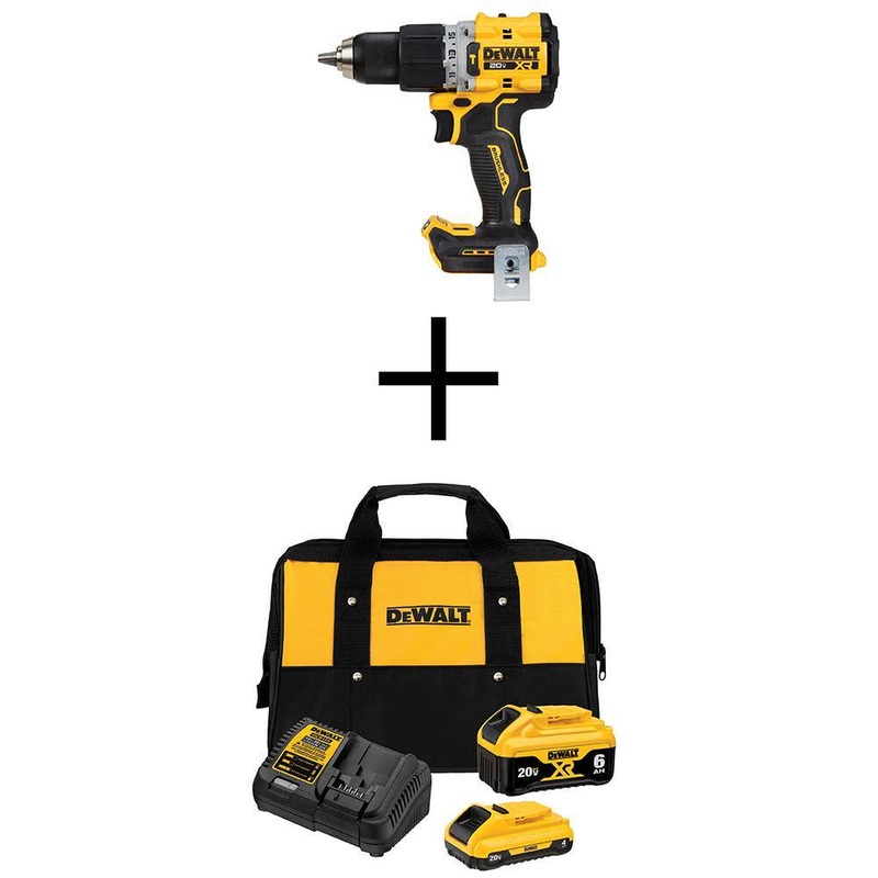 DEWALT DCD805BWCB246CK 20-Volt Compact Cordless 1/2 in. Hammer Drill with 6.0 Ah and 4.0 Ah Batteries, Charger and BagDesigned to help you complete demanding fastening and drilling projects, this 20-Volt maximumXR Brushless 1/2 in. Hammer Drill/Driver delivers the durability and performance professionals need on jobsite. Quickly drive fasteners into material with its powerful brushless motor, which outputs up to 40% more Unit Watts Out compared to DCD796B using DCB205 battery or DCBP034 DEWALT POWER STACK battery (sold separately). Speed through masonry drilling applications with up to 34,000 bpm thanks to an integrated hammer mode function. This lightweight, well-balanced Hammer Drill/Driver was built compact to help users comfortably work in tight spaces for extended periods of time. The 3-position, pivoting LED is designed to enhance visibility in dimly lit work areas with its 3 mode settings and up to 70 Lumens of brightness. This 20-Volt maximum starter kit DCB246CK includes a XR 6.0Ah battery, a XR 4.0Ah battery, 4 Amp charger and a kit bag.Complete challenging projects with up to 40% more UWO verses the DCD796B using DCB205 battery or DCBP034 DEWALT power stack battery (sold separately)Access hard to reach work areas: compact 7 in. size is 1/2 in. shorter in length compared to the DCD796, tool head onlyHigh bit retention with 1/2 in. metal ratcheting chuckPro-level speed, control and precision: high-speed transmission with variable trigger and 2 speed settings (0-650/0-2,000 rpm)Brighten dark work areas: adjustable 3-position, 3 mode LED with up to 70 Lumens, including LED spotlight mode which features a 20-minute shutoff function for extended work time in low-light spacesDesigned to help you get more done with optimized performance and runtimeManage and track tools at the jobsite: drill/driver chip pocket accepts tool connect chip DCE042 and connects with tool connect site manager app for seamless worksite asset management (DCE042 sold separately)DCB240 4 Amp hour (80-Watt hour) capacity provides extended runtimeDCB240 Compatible with 20-Volt maximum tools and chargersDCB240 includes fuel gauge 3 LED charge indicatorDCB240 lighter weight with same capacity as DCB204 4 Ah batteryDCB240 same size and weight as DCB230 20-Volt MAX compact 3 Ah batteryDCB246CK one 20-Volt MAX XR 6.0Ah battery and one 20-Volt MAX XR 4.0Ah battery provide up to 10 Amp hours of capacityDCB246CK charges all 12-Volt, 20-Volt and 60-Volt MAX batteries at a 4 Amp charge rateDCB246CK kit includes a soft bag for additional tool storageDCB246CK batteries come with a 3-year free service warrantyDCB246CK 3-LED fuel gauge system for immediate feedback on the state of chargeDCB246CK no memory and virtually no self-discharge for maximum productivity and less downtimeDimensionsProduct Depth (in.)7 inProduct Height (in.)8.14 inProduct Width (in.)2.5 in