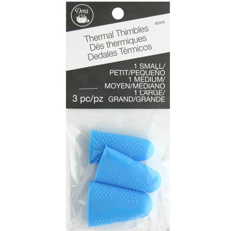Dritz Thermal Thimbles are heat resistant finger protectors designed to fit the index finger or thumb of either hand while ironing. Three sizes included for your best fit. Use caution when using steam. Not intended for use with sharp objects.