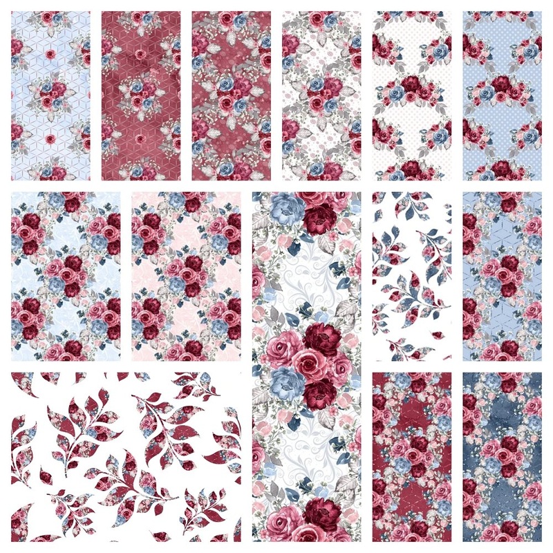 This fabric bundle includes 14 prints from theDusty Blue and Burgundy Fabric Collection. One cut of each print is included in the bundle. This product is made with 100% cotton.