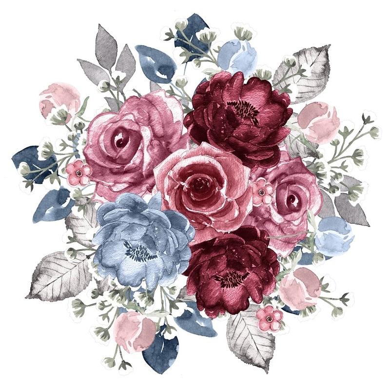 The Dusty Blue and Burgundy Round Floral Bouquet Fabric Panel is part of the Dusty Blue and Burgundy Fabric Collection printed by Sewing Parts Online. Digitally Printed on 100% cotton. This panel is available in 6 different sizes: