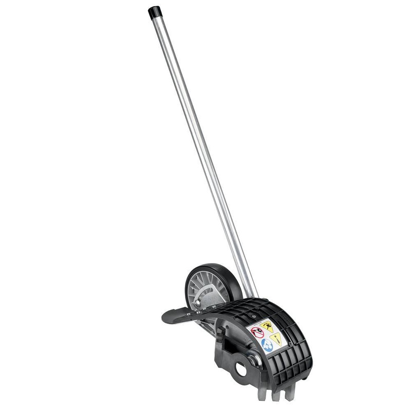 ECHO 99944200465 Adjustable Depth Bed Redefiner Attachment for ECHO Pro Attachment Series for Edge Shaping Garden BedsECHOs PAS Bed Redefiner attachment helps to reshape flowerbeds 7X faster than a shovel. The replaceable 6-finger claw helps cut through the toughest ground conditions. Oversized shield keeps the dirt and debris in the flowerbed while the support wheel adjusts for the perfect depth.For questions about service and repair, please call Echo at 1-800-432-ECHO or reference the Service & Repair documentBed redefiner attachment comes with a 5-year consumer / 2-year commercial warrantyPatented, replaceable six-finger steel clawBrazed, carbide tips to churn through the toughest conditionsAdjustable support wheel for that perfect edge depthLength is 34.8 inches and weighs 8.5 lbsCompatible with the ECHO PAS-2620 and PAS-280Oversized shield keeps debris in the bedWorks seven times faster than a shovelDimensionsBlade Length (in.)8 inBlade Thickness (in.)2