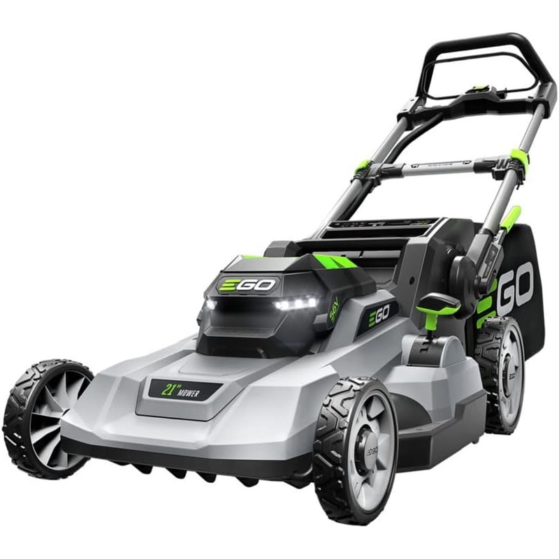 EGO POWER+ Electric Lawn Mower, Cordless Push, Battery and Charger Not Included LM2110The EGO POWER+ 21 Mower delivers up to 6.0 foot-pounds of torquepower that exceeds gas without the noise, fuss, or fumes. The high-efficiency brushless motor delivers long runtimes, low vibration, and lifelong durability. This electric lawn mower delivers up to 55 minutes of run time on a single charge with the recommended 56V 6.0Ah ARC Lithium battery (available separately). The cordless lawn mower delivers precision cutting with its advanced mulching blade and seven cutting height positions from 1.25 to 4 inches, adjustable with one hand. Three-in-one functionality delivers your choice of mulching, side discharge, or bagging your grass clippings; an easy-access two-bushel grass collection bag is included. This push lawn mower includes bright LED lights for added visibility when mowing at dawn or dusk, and it folds flat for compact storage between cuts. Experience Power Beyond Belief with the EGO POWER+ 21 Lawn Mower.Delivers up to 6.0 ft-lbs of cutting torque for performance that exceeds gas lawn mowersUp to 55 minutes run time on a single charge with the recommended 56V 6.0Ah ARC Lithium battery (available separately)High-efficiency brushless motor delivers long runtimes, low vibration, and lifelong durability7-position cutting height adjustments: 1.25 to 4 inches3-in-1 function: mulching, bagging, side dischargeQuick and easy push-button start21-inch deckBright LED headlightsAdjustable handle heightIPX4-rated weather-resistant constructionProduct informationBrandEGO Power+ColorGray/BlackPower SourceBattery PoweredVoltage56 VoltsForm FactorHandheldSpecial FeatureLightweightIncluded Components(1) New 21 Brushless Push Mower [LM2110]Item Weight45.2 PoundsMaterialPolypropylene (PP)Model Name21-Inch 56-Volt Cordless Brushless Push Lawn MowerStylePush Mower (No Battery/Charger)Product Dimensions67.5L x 22.4W x 36.2HManufacturerEGOUPC195532100073Item Weight45.2 poundsCountry of OriginChinaItem model numberLM2110BatteriesLithium Ion batteries required.
