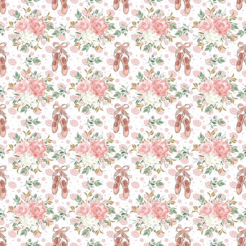 The White Elegant Ballerina Point Shoes and Floral Bouquets Fabric is part of the Beautiful Ballerina Fabric Collection printed by Sewing Parts Online. This fabric is digitally printed on 100% cotton.
