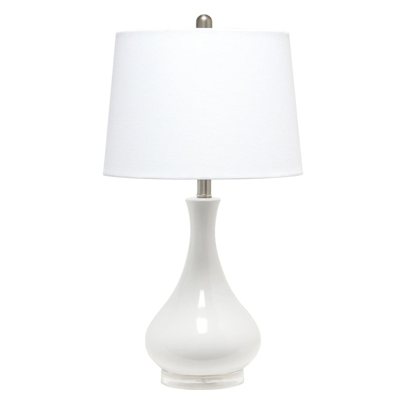 Elegant Designs Ceramic Tear Drop Shaped Table Lamp WhiteElegant Designs Ceramic Tear Drop Shaped Table Lamp White Description:A modern feel to a curvy classic, this ceramic lamp will sit flawlessly atop your dresser, nightstand, or furniture of your choice. A narrow neck leading to the teardrop base paired with a fabric shade is the perfect choice for simple with a soft pop of color. An ideal choice for those looking to add some brightness with a little style to your space.Tear drop shaped base in white. White fabric shade. Rotary Switch on socketUses 1 x 60W type A medium base bulb (not included). 5 clear plug in cord . Available in a number of base color optionsProduct Dimensions: 14Lx14Wx26.25H, Weight: 5.49lbsFinish/Color: White. Primary Material: Ceramic, 47% TC fabric, 3% chrome plated steel, 48% ceramic, 2% plastic. Style: ModernBulb Type: Incandescent (A19). Switch Type: Rotary. Switch Location: Socket. Number of Lights: 1. Maximum Wattage: 60. Cord Color: Clear. Cord Length: 60. Base Dimensions: L:6 X W: 6 X H: 1Brand Name: Elegant DesignsModel No: 1270-LT3312-WHT
