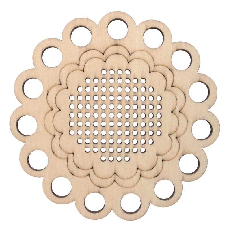 Cross stitch is becoming cool again and these cute embroidery floss holders can be personalised and are ideal for craft projects. These come in three designs, an owl, spool and a flower shape and are perfect for storing embroidery floss in style and keeps it both seperated and unknotted. Keep your floss neat & tidy wth the ply wooden floss holders. Cross stitch a unique design in the centre to personalise. Dimensions, 9.5cm x 9.5cm. Selected at random.