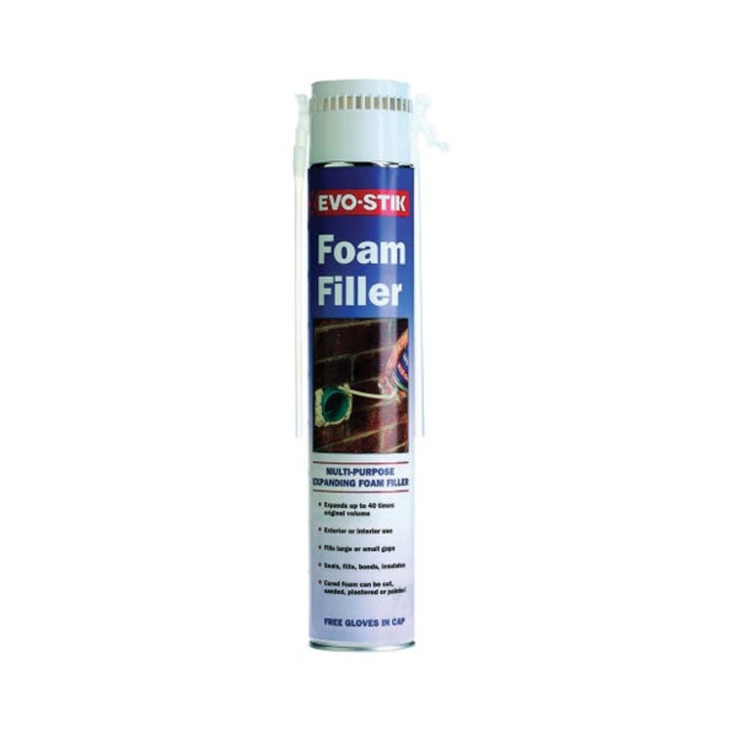 Expanding polyurethane foam filler that fills, seals and insulates. Can be cut, sanded, plastered and painted adheres to most building materials. Brand:Evo-Stik Manufacturer Part Number:30803693 Size:750ml Features & Benefits: Expanding polyurethane foam f