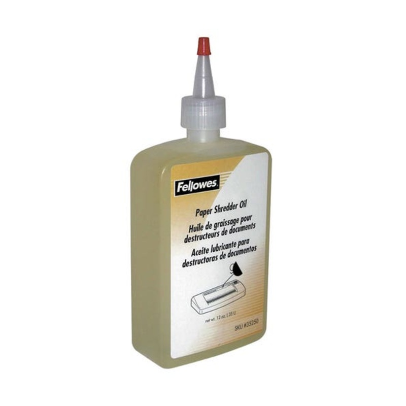 Fellowes 355ml Shredder Oil Brand:Fellowes Manufacturer Part Number:BB35250 Features & Benefits: Maintain the life and improve the performance of your shredder Regularly using shredder oil helps to keep the cutting mechanism clean and free from paper dust