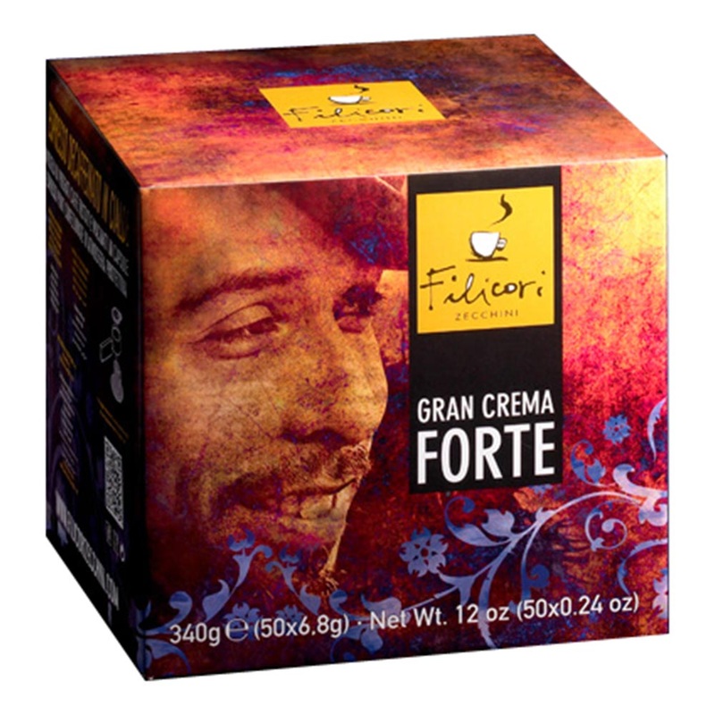Filicori Zecchini Espresso Gran Crema is a E.S.E. pod, (Easy Serving Espresso), version of their sophisticated whole bean espresso. This coffee originates from India, Brazil and some other South American roasters, each with individual styles roasted to preserve each respective distinct flavor and aroma characteristics. Filicori Zecchini’s Gran Crema Forte is an Arabica-Robusta blend with bold flavor, medium acidity, and complex aromas. Filicori Zecchini is recognized for its quality coffee and espresso by the Italian Espresso national Institute.