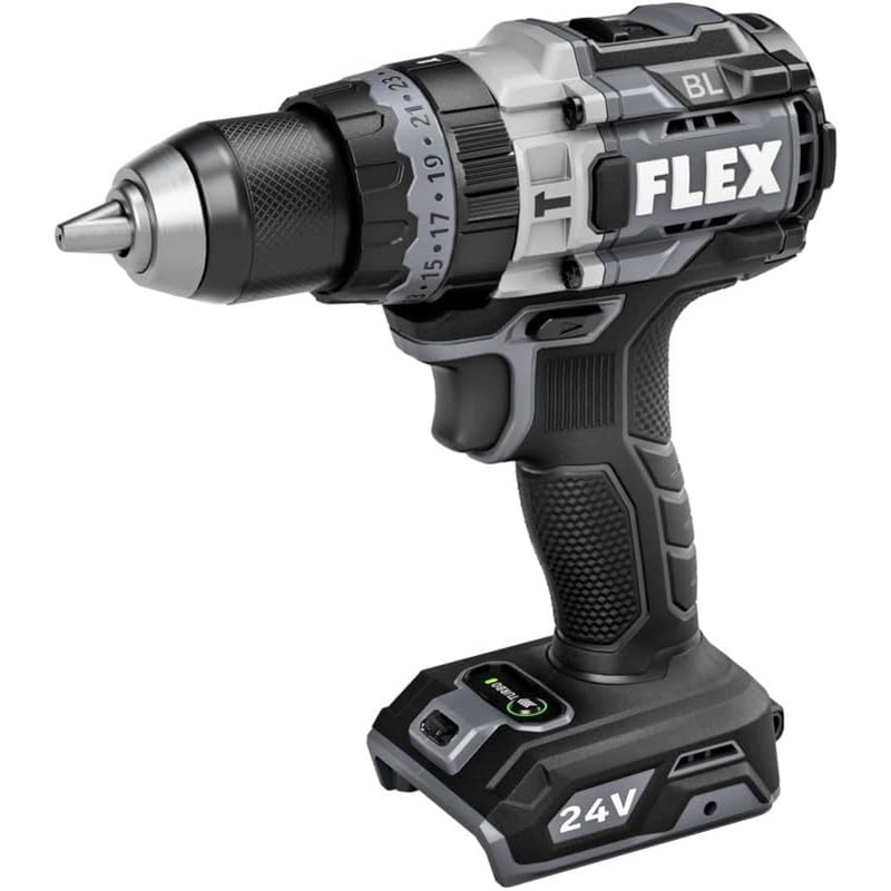 FLEX 24V Brushless Cordless 1/2-Inch 1,400 In-Lbs Torque 2-Speed Hammer Drill Turbo Mode Tool Only, Battery and Charger Not Included FX1271T-ZThe FLEX 24V 2-Speed Hammer Drill with Turbo Mode dominates drilling applications with industry-leading torque (1,400 in-lbs). Durable tool construction further ensures youre equipped for the long haul. Built-in LED lighting adds visibility in dark spaces. Anti-kickback protection detects tool jams letting you work confidently. This driver also delivers the FLEX Advantage of unmatched battery power, runtime, and faster charging (battery and charger sold separately). Protected by the FLEX Limited Lifetime Warranty when registered within 30 days of purchase at registermyFLEX.com through December 31, 2024.THE FLEX STACKED LITHIUM ADVANTAGE 200% more power with 24V Stacked Lithium, 300% longer battery life with THERMA-TECH+ heat management, 100% faster charging, 100% cross-compatible with all FLEX 24V tools and chargersSENSOR-FREE BRUSHLESS MOTOR Every FLEX 24V tool is built around an intelligent sensor-free brushless motor designed to eliminate friction and optimized for higher efficiency and powerTURBO MODE Increased speed for faster resultsUNRIVALED TORQUE Industry-leading torque at 1,400 in-IbsANTI-KICKBACK Advanced braking technology lets you work with confidence1/2-INCH FULL-METAL RATCHETING CHUCK WITH CARBIDE TEETH Long-lasting and reliableFLEX 24V CROSS-COMPATIBILITY Compatible with all FLEX 24V batteries, chargers, and tools (Battery and charger sold separately)FLEX LIMITED LIFETIME WARRANTY Register your new FLEX tool, battery, or charger within 30 days of purchase through December 31, 2024 to receive a limited lifetime warrantyProduct informationTechnical DetailsBrandFLEXPower SourceBattery PoweredMaximum Rotational Speed2500 RPMVoltage24 VoltsColorGrey/BlackIncluded ComponentsBare toolSpecial FeatureAdjustable ModeProduct Dimensions7.2L x 4W x 10HMaterialPlastic, MetalMaximum Torque1400 Inch PoundsSpeed2.5E+3 RPMMaximum Power850 WattsItem Torque1400 Inch PoundsDrill TypeHammer DrillIs ElectricYesUPC840163200998Drilling Capacity Wood0.5 InchesManufacturerFLEXDrilling Capacity Metal0.5 InchesPart NumberFX1271T-ZItem Weight5.39 poundsItem model numberFX1271T-ZBatteriesLithium Ion batteries required.Size1,400 In-LbsStyleTool OnlyItem Package Quantity1Special FeaturesAdjustable ModeBatteries Required?YesBattery Cell TypeLithium