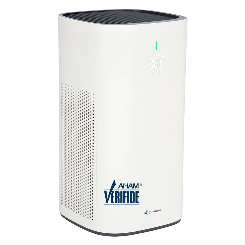 Guardian Technologies Hi-Performance Air Purifier Tower Console with HEPA Filter and Air Quality SensorThe GermGuardian Air Purifier Console with HEPA filter helps relieve allergies by capturing 99.97% of dust and allergens as small as .3 microns in size with its 360 filter. The activated carbon filter attacks common household odors including those caused by smoke, cooking and pets. It also works to reduce the many VOCs that are emitted by common household products and cleaning chemicals. This unit is designed with an easy to use touch control panel with features that support your homes indoor air quality. Equipped with 4 fan speeds, air quality monitor, auto mode, sleep mode, timer and a child lock. The Air Quality Monitor detects the amount of particles in the air and displays the air rating on an easy to read 3 color LED display. When in auto mode the GermGuardian reads real time air quality and automatically adjusts the fan speed, providing you with peace of mind that your unit is filtering your air accordingly. In sleep mode, the unit will run in low mode while the display lights turn off. The purifier has a timer for 2, 4, 6 or 8 hours and a child lock. 19 in. tall, this GermGuardian provides air cleaning in rooms up to 298 sq. ft.Allergen Control: 360 HEPA filter captures 99.97% of dust and allergens as small as 0.3 microns such as household dust, pet dander, mold spores and plant pollensCaptures odors: activated carbon filter reduces odors from pets, smoking, cooking along with many VOCs emitted from a variety of household products and chemicalsAir Quality Monitor (AQM) with indicator display: Smart AQM detects particulate matter that is 2.5+ microns in size and can automatically adjust to optimize room air quality, the air quality monitor will change colors indicating the real time airquality level in the room from good, average, poor and very poorHigh performance: 19 in. console is best used for rooms up to 298 sq. ft. filters and circulates room air over 4 x per hour, the higher the CADR the faster the unit filters the air, smoke 192; dust 199; pollen 221Auto mode: automatically adjusts between the 4 fan speeds depending on the air quality level in the room, providing you with peace of mind that your air purifier is filtering your air accordinglySleep mode: library quiet operation while display lights turn off to help darken the room for sleepingEasy to use: digital touch controls to control fan speed, sleep mode, auto mode, timer and child lockExceeds industry standards: AHAM verified, Energy Star certified and carb compliantFilter replacement reminder: only 1-single filter needs to be replaced every 6-8 months depending on the use of the product; replacement filter is filter P (model FLT5800), important: use genuine guardian technologies replacement parts to maintain product performance, 3 year limited manufacturer warranty