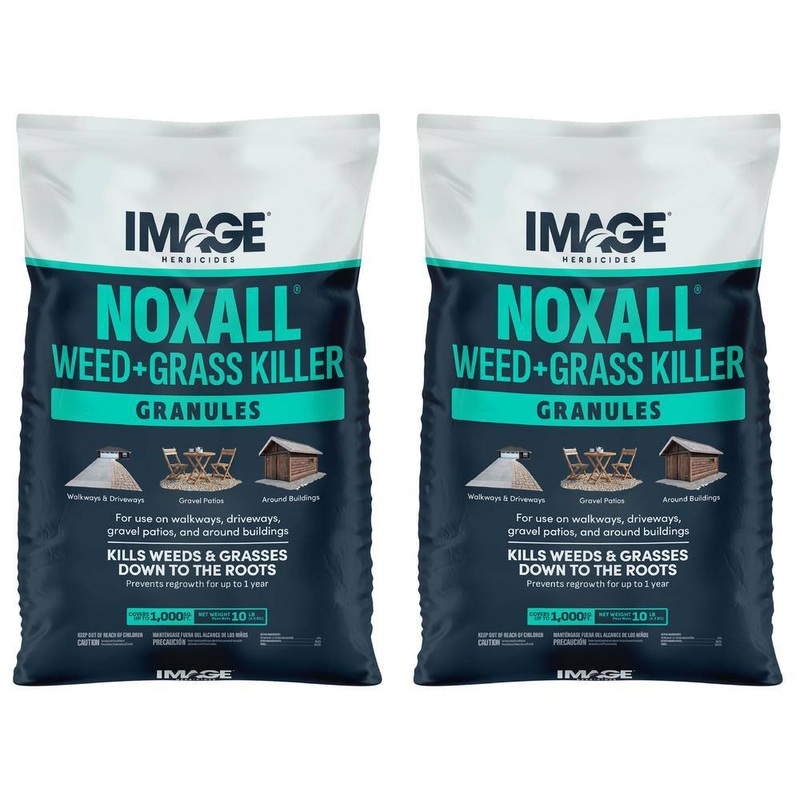 IMAGE 100551819 10 lb. 1,000 sq. ft. Outdoor Patio, Driveway and Walkway Noxall Vegetation Killer Granules (2-Pack)The IMAGE Outdoor Patio, Driveway, and Walkway Noxall Vegetation Killer is a post-emergent, non-selective herbicide that kills all weeds and grasses and prevents regrowth for up to 1 year. The noxall granules are recommended for spreading on walkways, along fences, and under decks. This proprietary weed killer formula kills existing vegetation down to the roots and should be applied where no plant growth is desired. These ready-to-use granules will cover up to 1,000 sq. ft. of area per bag and can be applied late fall through early spring. Do not allow people or pets to enter the treated area until the granules have been thoroughly watered in and the treated soil has dried.Use in your lawn care routine to kill unwanted weeds and grassesPrevents regrowth for up to 1 yearSprinkle in locations where no plant growth is desiredCovers up to 1,000 sq. ft. per bagDimensionsCoverage Area (sq. ft)2000Product Depth (in.)6 inProduct Height (in.)19 inProduct Size20 LB-PoundProduct Width (in.)11 inDetailsApplication MethodSprinkleApplication TypeGranularArea of UseDriveway, PatioBag Weight (lb.)20 lbCompatible Grass TypeNot for use on lawnsConcentrated or Ready to UseReady to useContact or systemicContactContainer typeBagEmergent TypePre and Post EmergentEquivalent ready to use amountN/AExtended ControlNon-Extended ControlFeaturesKills Common WeedsFormGranularIndoor/OutdoorOutdoorOrganicNon-OrganicPack Size2Primary Active IngredientDichlobenilSafe ForSafe For Kids, Safe For PetsSafe for EdiblesNoTotal Coverage Area (sq. ft.)2000Weed TypeAnnual Bluegrass, Annual Ryegrass, Bahia Grass, Bermuda Grass, Bindweed, Black Medic, Blue Violet, Card Thistle, Carpetgrass, Centipede Grass, Clover, Common Chickweed, Crabgrass, Dandelion, Dollarweed Lawn Pennywort, Goosegrass, Henbit, Horsetail, Nutsedge, Plantain, Tall Fescue, Wild Garlic, Wild Onion, Wiregrass, Yellow Nutgrass, Zoysia Grass