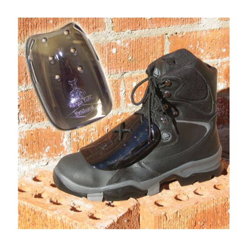 Metguard metatarsal protector is a safety footwear attachment which protects the metatarsal area of the foot. Designed and tested to compliment steel cap footwear. The lip of the METGUARD sits on top of the steel cap at load point and is secured with exist