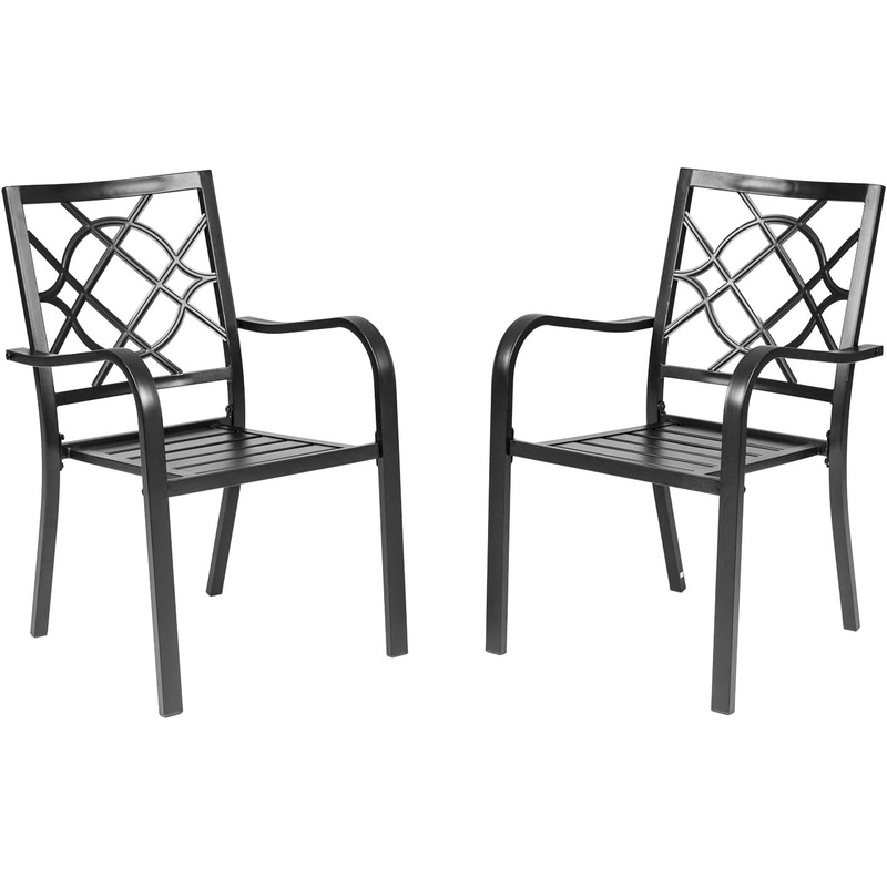 Incbruce 300lbs Patio Chairs Set of 2 Outdoor Dining Chairs, Metal Frame Stackable Patio Dining Chairs, Wrought Iron Black Outdoor Chairs with Armrest for Garden, Poolside, Backyard | Bigbigmart.com