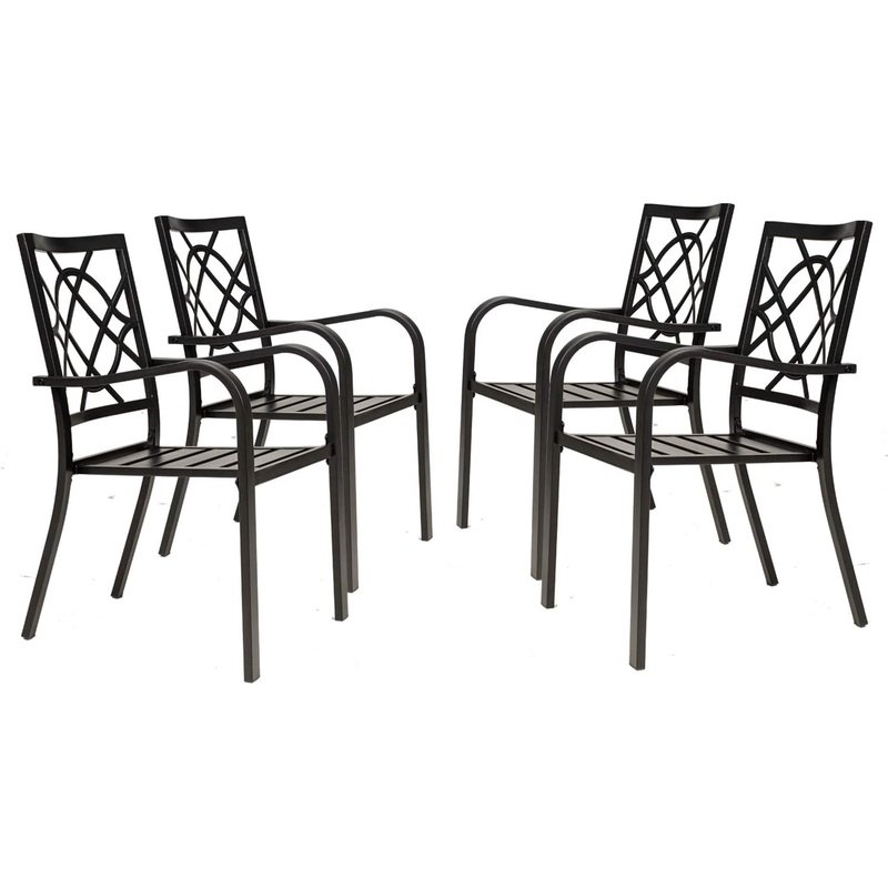 Incbruce 300lbs Patio Chairs Set of 4 Outdoor Dining Chairs, Metal Frame Stackable Patio Dining Chairs, Wrought Iron Black Outdoor Chairs with Armrest for Garden, Poolside, Backyard