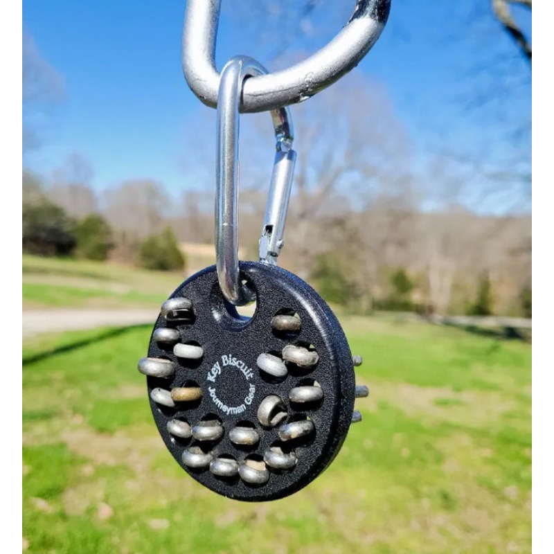 Journeyman Gearis proud to introduce our Fourth bucket organizational tool for the lineman industry with the release of the KeyBiscuit. It allows you hold up to 19 keys from a single, easy to manipulate place. Extremely lightweight, this allows you to store the keys you every single day without having to hold them in your mouth when pulling them and replacing them on the pole.It can be used with included carabiner or tied off the tool bags for easy access.