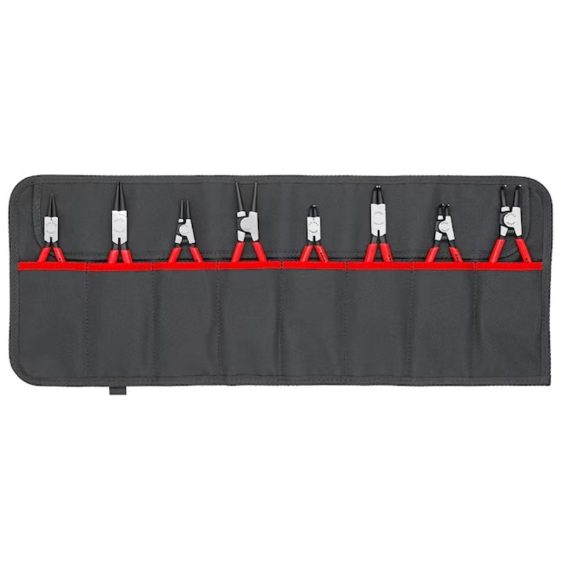 KNIPEX 6.5-Inches Snap ring pliers | 00 19 58 V01The KNIPEX Snap Ring Pliers Set is a comprehensive and high-quality tool kit designed specifically for working with circlips or snap rings The set has both internal and external snap ring pliers These pliers features precise tips or jaws that securely grip the circlips, allowing for easy installation or removal This set includes a tool roll with two (2) of each Internal Snap Ring Pliers and External Snap Ring Pliers and two (2) of each Internal Angled Snap Ring Pliers and External Angled Snap Ring PliersTips are forged as one part of the toolSolid style, forgedGeneralColor/Finish FamilyBlackTypeSnap ring pliersDimensionsHandle Length (Inches)0Overall Length (Inches)6.5Jaw Capacity (Inches)2.36Size Measurement (Inches)6.5Jaw Tip Size0Thickness (Inches)0FeaturesApplicationAutomotiveMaterialChrome vanadium steelConstructionCirclipStripping FeatureNoCrimping FeatureNoSwivel TipsNoCutting FeatureNoTether ReadyNoHandle TypeDipped handleWire-Pulling FeatureNoInsulatedNo