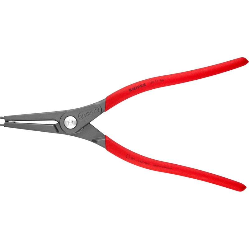 KNIPEX External Precision Snap Ring Pliers | 49 11 A4Made In Wuppertal-Cronenberg, Germany. In Addition To Quality, Innovation And Performance, Other Important Cornerstones Are Sustainable Actions And Value-Guided Orientation.Precision Grade Performance ToolsThe Number 1 Choice Of Tradesman WorldwideComfortable In Use And Quality Assured DesignFit To Match The Needs In The Shop, At Home Or In The Service FieldEach Tool Is Proven And Tested For Durability And Function In Real World Use And ConditionsProduct informationTechnical DetailsBrandKNIPEXMaterialBlendColorRed and SilverHandle MaterialPlasticItem Weight13.76 ouncesSpecific Uses For ProductService FieldSpecification MetDIN 5254 AGrip TypeErgonomicUPC843221002947Global Trade Identification Number00843221002947ManufacturerKnipex ToolsPart Number49 11 A4Item Weight13.8 ouncesProduct Dimensions13 x 2.56 x 0.88 inchesCountry of OriginGermanyItem model number4911A4Size12.6-InchStyleClassicFinishBrushedPatternSolidShapeRectangularPower Sourcehand_poweredItem Package Quantity1Number Of Pieces1Included Components1 Knipex Branded ProductBatteries Included?NoBatteries Required?NoWarranty DescriptionWorkmanship and Materials