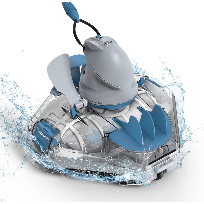 KOKIDO Cordless Robotic Pool Cleaner, Automatic Pool Vacuum for Flat Bottom Above/Inground Pools up to 30 Feet. Dirt, Sand, Debris and Leaves (max 5 inch), Last 90 Mins, XTROJET 330SAFE CORDLESS CLEANING : XTROJET pool robotic cleaner is cordless safe. Transparent canister, make sure you know what is inside the robot before opening.DESIGNED FOR LEAVES AND DIRT : XTROJETs unique water passage system with XL sized mouths can pick up soft leaves up to 5 inches in length, best in the class! Also collects common debris like sand, twigs, dirt and dead bugs etc.EXTRA POWER AND DEBRIS CAPACITY : Strong suction at 18.7gal/min water flow through a 250-micron filter, 1 gallon debris capacity largest in class. For FLAT bottom pools up to 30 feet and up to 625 sq ft in size.EASY TO USE, EASY TO RETRIEVE : Lightweight at 8.25 pounds, can be lifted with one hand. Visible buoy kit for waterline retrieval (robot invisible when water is cloudy). One-button power on, 3-position pin setup for different pool sizes.ENVIRONMENTAL FRIENDLY : Long mileage 4,430ft cleaning distance in one charge cycle (longest range in class). No-frills minimal packaging, protects the planet!AWARD-WINNING POOL CLEANING BRAND : Kokido is an award-winning brand with 30 years experience in pool cleaning. The product comes with a 1-year warranty and worry-free customer support