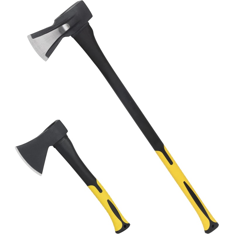 KURUI Wood Splitting Axe and Hatchet Set, 15 Camping Hatchet & 34 Chopping Axe for Cutting and Felling, Long Handle Splitter Axe with Shock-Absorbent Fiber Glass Anti-Slip Handle and Blade Sheath
