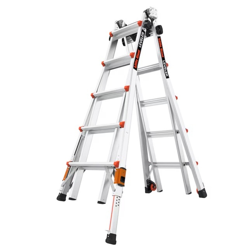 Little Giant Ladders 16502T-803 Leveler 2.0 M22 with Leg Levelers 22-Feet Reach Type 1A 300 lbs. Load Capacity Telescoping Multi-Position LadderUsing a ladder outdoors has always had its challenges, but the Little Giant Leveler 2.0 changes that experience. Whether you work on unlevel ground or set up your ladder on a staircase, the Leveler can handle it. Meeting or exceeding all OSHA and ANSI standards, the Leveler is rated to hold 300 lbs. in all configurations; and in A-frame, it will hold 300 lbs. on both sides. Uneven terrain? Not a problem. With the ratchet leg levelers, you can adjust the ladders legs in seconds, allowing you to stabilize the ladder on unlevel ground. The retractable legs yield more than 7 inches of leveling adjustment. The Leveler is the ladder that helps you complete any given task with ease. Set up the ladder in different configurations that suit the project at hand, like A-frame, extension, staircase, 90-degree or trestle-and-plank scaffolding. Its fast and easy.Maximum reach of 22-ft in extension ladder position (assuming a 5 ft 6 in person with a vertical 12 in reach)Multiple configurations, including A-frame, extension, staircase or 90 ladder and trestle-and-plank scaffolding systemIncludes the Little Giants patent-pending Ratchet Levelers that adjust hands-free in secondsWide-flared ratchet leg levelers adjust to reach uneven terrain in secondsRapid Lock adjusters instantly alter your ladder into different configurationsType 1A ladder is rated to hold 300 lbsMeets or exceeds all OSHA and ANSI standardsLittle Giants Limited Lifetime WarrantyGeneralSeries NameLeveler 2.0 M22 with Leg LevelersTypeMulti-positionDimensionsAverage Reach Height (Feet)22Step Ladder Maximum Height (Feet)9Closed/Folded Minimum Height (Feet)5.6Step Ladder Maximum Reach Height (Feet)13Extension Ladder Maximum Height (Feet)19Step Ladder Minimum Height (Feet)5Extension Ladder Minimum Height (Feet)11Storage Depth (Inches)8.5Load Capacity (lbs.)300Storage Height (Feet)5.6Rung/Step Depth (Inches)1.5Weight (lbs.)44FeaturesAdjustable Leg LevelerYesNumber of Steps18FoldableYesRecommended UseIndustrialFor Use on StairsYesRung/Step MaterialAluminumFor Use on Uneven SurfacesYesShelf IncludedNoLadder RatingType 1A 300 lbs.Step Rise (Inches)12MaterialAluminumTelescopingYesNon-Conductive MaterialNoTool StorageNoNon-marringYesWeather ResistantYesNon-Slip TreadYesWheelsYesNumber of Positions15