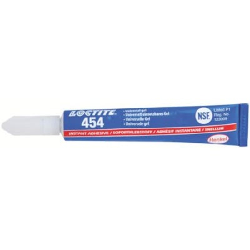 LOCTITE 454 is a general purpose, non-drip gel, instant adhesive that is ideal for vertical surfaces and overhead applications. Brand:Loctite Manufacturer Part Number:195678 Size:20g Additional Information:Universal instant adhesive gel. Will not drip or r