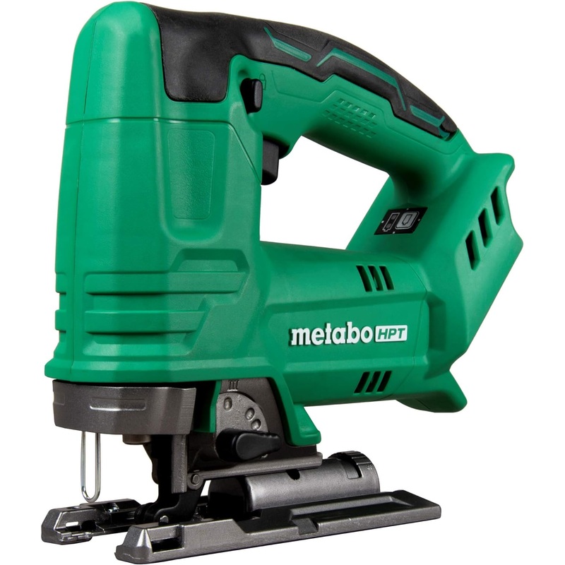 Metabo HPT 18V MultiVolt Jig Saw | 2500 SPM | Variable Speed Trigger | Tool Only | CJ18DAQ4Introducing the CJ18DAQ4 cordless jigsaw, which is capable of generating an impressive no-load speed of 2,500 Strokes Per Minute(SPM) and weighs only 4.2 lbs. This powerhouse also features an LED light to illuminate the cutting path and a dust blower function to clear debris as you cut, for increased precision. With 4 modes, experience faster cuts with the 3 orbital action settings, or precision results with the straight cut setting. A 45 degree left and right adjustable base provides greater options for cutting angles. Change blades quickly and easily for different materials with the tool-less blade change system. Plus, the quick brake function stops the blade faster to increase safety and reduce delay for the user. The soft vibration reducing grip lets you work longer with less fatigue.SPEED: 2,500 strokes per minute to get the job done fasterLIGHTWEIGHT: Only 4.2 lbsVERSATILITY: Choose between 4 cutting modes for fast or precision cuttingLED: Bright light allows work even in dark placesTRIGGER: Variable speed trigger allows for complete control to fit any applicationTOOL-LESS BLADE CHANGE: Quickly replace blade for different types of materialSPLINTER GUARD: Get cleaner cuts by controlling the splintering of the woodDUST BLOWER: Keep path clean for better accuracyBASE: 45 left and right adjustable base allows angle cuts with easeBulb Voltage18 voltsProduct informationTechnical DetailsBrandMetabo HPTColorBlack, GreenBlade MaterialHigh Speed SteelSurface RecommendationWoodPower SourceBattery PoweredSpecial FeatureBrakeIncluded Componentsdust collection adapter, jigsaw blade, splinter guard, hex wrenchProduct Dimensions14.2L x 1.03W x 3.9HVoltage18 VoltsWarranty Typelimited warrantyItem Weight4.2 PoundsBlade Length5 MillimetersNumber of Teeth10Number of Batteries1 Lithium Ion batteries required.Cutting Angle45 DegreesGlobal Trade Identification Number00717709027992Handle MaterialPlastic or RubberUPC717709027992ManufacturerMetabo HPTPart NumberCJ18DAQ4MItem Weight4.2 poundsItem model numberCJ18DAQ4Batteries1 Lithium Ion batteries required.StyleMetabo HPT CJ18DAQ4 18V Jig Saw (Tool Only)Item Package Quantity1Special FeaturesBrakeBatteries Included?NoBatteries Required?No