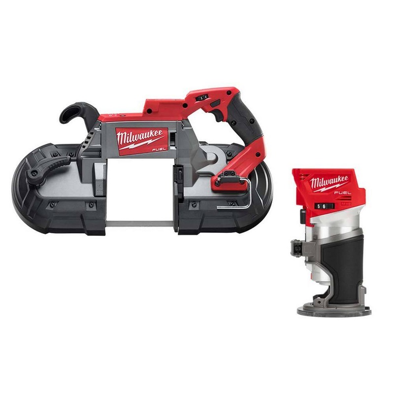 Milwaukee 2729-20-2723-20 M18 FUEL 18V Lithium-Ion Brushless Cordless Deep Cut Band Saw w/Compact RouterThe M18 FUEL Band Saw cuts faster than its corded counterparts, provides the same legendary durability of a Milwaukee corded band saw and delivers up to 2X more run time than other cordless options. Utilizing a POWERSTATE Brushless motor and Constant Power Technology, the M18 FUEL Deep Cut Band Saw cuts faster than corded band saws. It also delivers the same legendary durability that has made Milwaukee Corded Deep Cut Band Saws second to none for decades by utilizing over 90% of the same parts. Equipped with Jobsite Armor Technology, the tool is better protected from drops and debris with a proprietary composite material and crush zone barriers to absorb impacts. REDLITHIUM XC5.0 Battery Technology provides up to 2.5X more run-time through superior pack construction, electronics and more work per charge over the life of the battery than any competitive lithium-ion battery on the market. REDLINK PLUS Intelligence has the most advanced system of cordless power tool electronics, providing optimized performance, electronic clutch and overload protection using total system communication between tool, battery and charger. The M18 FUEL Deep Cut Band Saw features a tool-free locking adjustable shoe that can adjust from an extended shoe to no shoe in seconds. Other innovative features include a hang hook for easy storage in-between cuts, LED light to illuminate the cutting area, superior cut visibility and a balanced body design.Heavy-duty 15 Amp high-torque motorCPT constant power technology: maintains cut speed in the toughest applications for optimal performanceOver 90% same parts as Milwaukees corded deep cut band sawJobsite armor technology: proprietary composite material and crush zone barriers provide long-lasting rugged protectionREDLINK PLUS intelligence: the most advanced system of cordless power tool electronics, provides optimized performance and overload protection using total system communication between tool, battery and chargerAll metal direct drive: delivers maximum tool life with all metal direct drive gearing system, while requiring less servicing than a chain driveREDLITHIUM XC5.0 battery: provides superior pack construction, more work per charge and more work over the life of the pack than competitive batteriesTool-free locking adjustable shoe: button actuated tool-free design allows user to quickly adjust from an extended shoe to no shoe in secondsIndustrys largest cut capacity: versatility to cut up to 5 in. x 5 in. material in one pass and adjustable shoe allows for less tool rotation when cutting material above 5 in.LED light: illuminates work surface for increased accuracy and productivityPart of the M18 system, featuring over 250+ toolsCompatible with all M18 batteriesIncludes: one 2729-20 M18 FUEL deep cut band saw and 1 blade2723-20: Variable speed dial ranges between 10,000 RPM and 31,000 RPM, providing precise control for clean edges and details2723-20: Macro adjust button allows for fast macro-adjustments and 1.5 in. of adjustable range2723-20: Fine adjustment screw allows for precise adjustments beyond 1/64 in. increments2723-20: Accepts 1/4 in. shank router bits2723-20 Includes: one M18 FUEL compact router console, 1 fixed base, one 1/4 in. collet, 4 in. round sub-base plate, one 5-3/4 in. template sub-base plate, dust shroud, 1 straight edge guide, one 11/16 in. collet wrench, one 7/16 in. spindle wrenchDimensionsMaximum Blade Length (in.)44.875 inMaximum Blade Width (in.)0.5 inMinimum Blade Length (in.)44.875 inMinimum Blade Width (in.)0.5 inProduct Depth (in.)6 inProduct Height (in.)11.5 inProduct Width (in.)21 inWork Table Length (in.)0 inWork Table Surface (in.)0 in x 0 inWork Table Width (in.)0 in