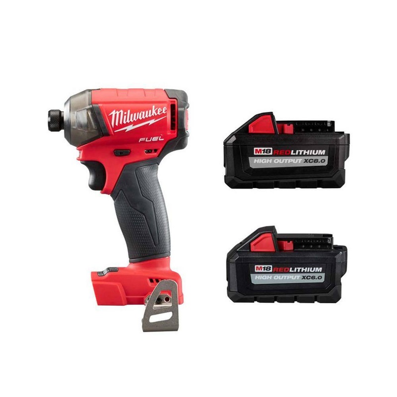 Milwaukee 2760-20-48-11-1868 M18 FUEL SURGE 18V Lithium-Ion Brushless Cordless 1/4 in. Hex Impact Driver w/(2) BatteriesThe M18 FUEL SURGE 1/4 in. Hex Hydraulic Driver is the quietest cordless fastening solution on the market. With Milwaukees new FLUID-DRIVE Hydraulic Powertrain, users will experience up to 50% quieter operation, 3X less vibration for smoother operation and faster driving speeds compared to standard impacts. The POWERSTATE Brushless Motor delivers up to 0-3,000 RPM with constant power output to drive screws faster. REDLINK PLUS Intelligence is the most advanced electronic system on the market, preventing damage to the tool and battery caused by overloading or overheating. For use with REDLITHIUM Compact Batteries or Extended Capacity Batteries, which deliver more work per charge and more work over the life of the pack than competitive batteries on the market. The 4-Mode DRIVE CONTROL provides greater control over output speed and power for greater versatility. Self-Tapping Screw Mode is designed to reduce walking when starting self-tapping screws as well as reduce overdriving, breaking and stripping out screws. The M18 REDLITHIUM HIGH OUTPUT XC8.0 Battery Pack and the M18 REDLITHIUM HIGH OUTPUT XC6.0 Battery Pack provides 50% more power and runs 50% cooler vs M18 REDLITHIUM XC battery packs. The optimized combination of size and increased power provides a great solution for the entire range of M18 products.FLUID-DRIVE hydraulic powertrain reduces metal on metal contact within the tool, delivering quieter operation, smoother performance and increased durability over a standard impactPOWERSTATE brushless motor outperforms all leading competitorsREDLINK PLUS intelligence prevents damage to the tool and battery due to overloading or overheatingREDLITHIUM batteries deliver more work per charge and more work over the life of the battery4-mode drive control provides greater control over output speed and powerIncludes: one 2760-20 1/4 in. hex hydraulic driver, 1 belt clip, 1 bit holder, (1) M18 REDLITHIUM High Output XC8.0 Battery, (1) M18 REDLITHIUM High Output XC6.0 BatteryCompatible with all M18 batteries and chargersPart of the M18 system, featuring over 250 plus toolsBest-in-class construction: Offers long-lasting performance and the best protection against jobsite conditionsREDLINK Intelligence: Provides optimized performance and overload protection using total system communication between tool, battery and chargerVersatility: Powers more than 150 M18 cordless solutionsDimensionsProduct Depth (in.)5 inProduct Height (in.)7.67 inProduct Width (in.)2.38 in