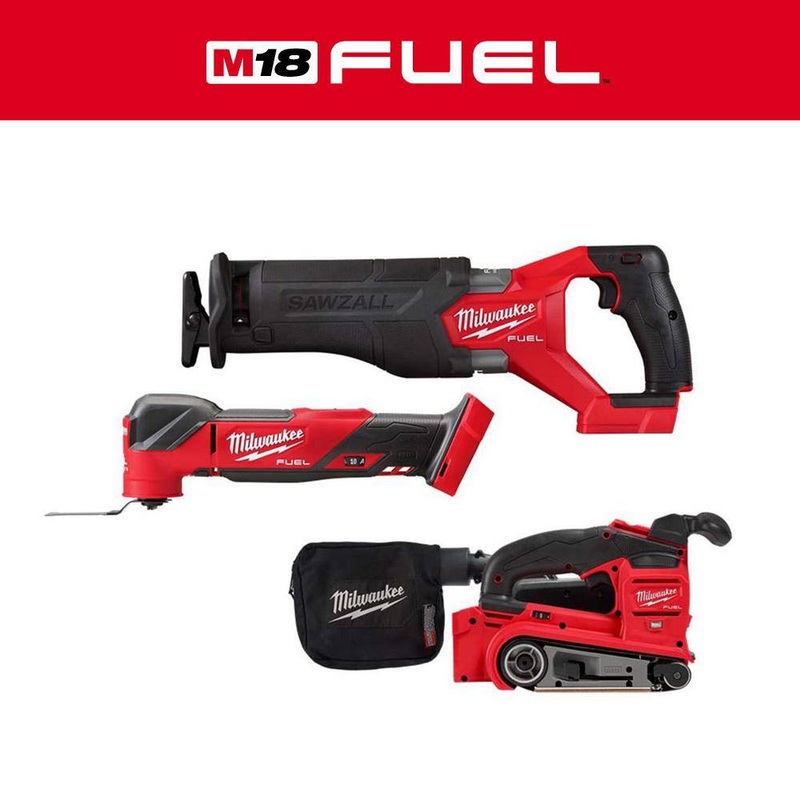 Milwaukee 2821-20-2836-20-2832-20 M18 FUEL GEN-2 18-Volt Lithium-Ion Brushless Cordless SAWZALL Reciprocating Saw, Multi-Tool and Belt SanderThe Milwaukee M18 FUEL SAWZALL Recip Saw is the next generation of legendary performance and durability, designed for the toughest applications on the job site. The M18 FUEL SAWZALL is the fastest cutting reciprocating saw in its class and leverages a POWERSTATE Brushless Motor to provide users with 3,000 SPM with a 1-1/4 in. stroke length for faster material removal. REDLINK PLUS electronics ensure maximum performance under stress as well as protection from overloading, overheating and over-discharging. The M18 REDLITHIUM XC5.0 Battery Pack (not included) delivers users up to 2.5X runtime and provides more work per charge and more work over the life of the pack than competitive batteries. The M18 FUEL SAWZALL Recip Saw is designed to perform in the most demanding applications and is the most durable Milwaukee cordless reciprocating saw yet. A wear-resistant blade change, anti-corrosion blade clamp and metal reinforced battery rails provide longer component life and stand up to the toughest jobsite conditions. The M18 FUEL SAWZALL Recip Saw is lighter weight than the previous generation and features an adjustable shoe, integrated LED light and a hanging hook for convenient storage on the job.