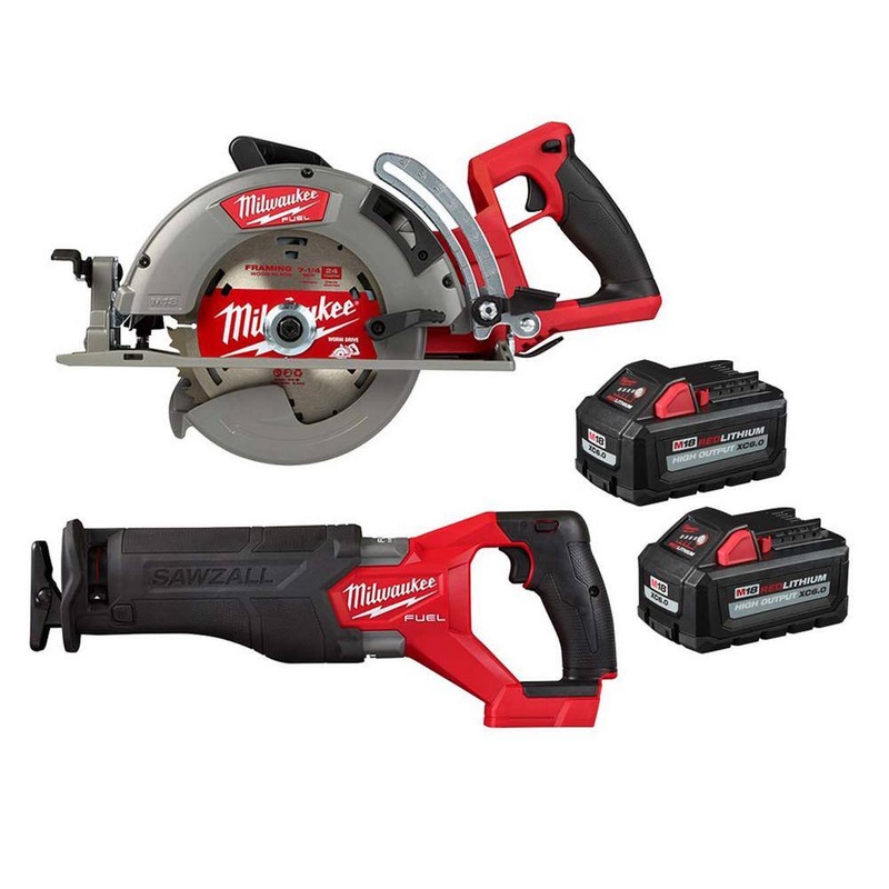 Milwaukee 2830-20-2821-20-48-11-1862 M18 FUEL 18V Lithium-Ion Cordless 7-1/4 in. Rear Handle Circ Saw w/SAWZALL, Two 6 Ah High Output Batteries (2-Tool)Designed for professional carpenter, remodeler, and general contractor, m18 fuel rear handle 7-1/4in. Circular saw fromMilwaukee can generate power of 15 amp corded saws, cut faster than 15 amp corded saws, and delivers users up to 570 cuts per charge. Powerstate brushless motor provides 5,800 rpm and higher speeds under load for corded cutting performance. Redlink plus intelligence ensures maximum performance and protection from overload, overheating and over-discharge. An electric blade break, led work light, all magnesium guards, and shoe saw will keep users productive and provide durability to handle toughest jobsite conditions.Milwaukee m18 fuel sawzall recip saw is next generation of legendary performance and durability, designed for toughest applications on job site. M18 redlithium high output xc6.0 battery pack provides 50% more power and runs 50% cooler than m18 redlithium xc battery packs.