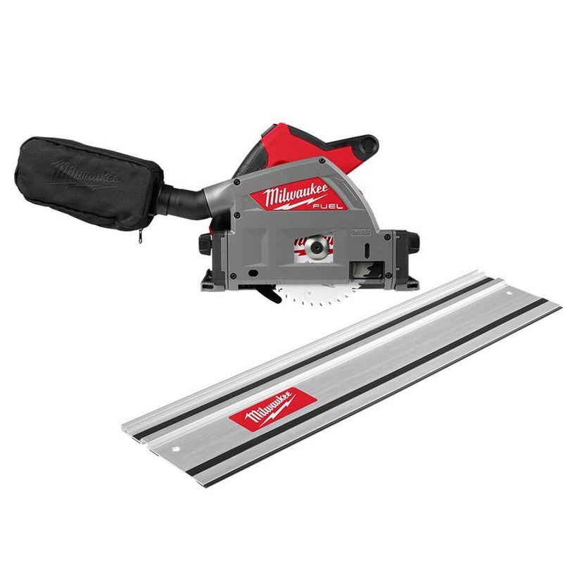 Milwaukee 2831-20-48-08-0570 M18 FUEL 18V Lithium-Ion Cordless Brushless 6-1/2 in. Plunge Cut Track Saw with 31 in. Track Saw Guide RailDesigned for the professional carpenter and remodeler, the M18 FUEL 6-1/2 in. Plunge Track Saw from Milwaukee delivers the Power to rip solid hardwoods, over 90% dust collection efficiency while providing the portability and precision users demand from a plunge saw. The Powerstate Brushless motor provides 6,300 RPM for finish quality, clean cuts. REDLINK PLUS intelligence ensures maximum performance and protection from overload, overheating and over discharge. The M18 REDLITHIUM HIGH OUTPUT XC6.0 battery delivers more cuts per charge and great durability then the competition. The saw features a variable speed dial allowing for setting the speed to your application. The smooth, pivoting plunge motion allows for precision plunge cuts with accurate depth of cut.