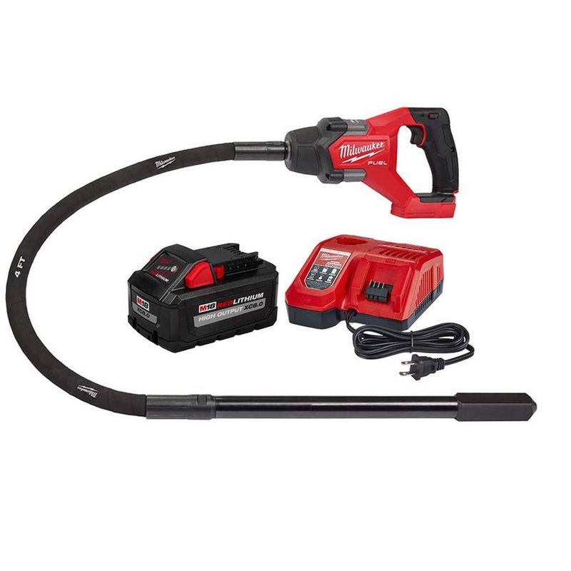 Milwaukee 2910-20-48-59-1880 M18 FUEL 18-Volt Lithium-Ion Brushless Cordless 4 ft. Concrete Pencil Vibrator with 8.0 Ah Starter KitThe Milwaukee M18 FUEL 4 ft. Concrete Pencil Vibrator generates up to 1.8 peak HP, with no setup and gives users the ability to consolidate 20 yds of concrete per charge. The M18 FUEL 4 ft. Concrete Pencil Vibrator generates 1.8 Peak HP, which is 3-times more powerful than competitive cordless pencil vibrators for concrete, all on the M18 Cordless System. The POWERSTATE Brushless Motor delivers maximum sustained power and 12,500 VPM for optimal consolidation with a variable speed trigger. REDLINK PLUS Intelligence ensures unmatched levels of performance and protection. The M18 REDLITHIUM HIGH OUTPUT XC6.0 Batteries (not included) deliver users 50% more power while running 50% cooler than M18 REDLITHIUM XC Batteries and are compatible with 250+ tools in the M18 System.Cordless pencil vibrator: easier setup and generates 1.8 peak HPConsolidate up to 20 cu. yds. per charge with high output 6.0 battery packNo extension cords: easier set up and transportation, eliminates trip hazardsPOWERSTATE brushless motor: delivers consistent 12,500 VPM for optimal consolidationREDLINK PLUS intelligence: most advanced system of electronics in the industry, enabling communication between batteries and tools, allowing for unmatched levels of performance and protectionREDLITHIUM battery pack: superior pack construction, electronics and performance deliver more work per charge and more work over pack lifespan than any battery on the marketSquare head design delivers greater amplitude for increased productivity compared to round headsGenerates up to 3-times more power than comparable cordless pencil concrete vibratorsVariable speed trigger for maximum controlPress fitted head and shaft is 1 unit integrated with the motorCompatible with all M18batteriesPart of the M18 System, featuring over 250+ solutionsIncludes: (1) M18 FUEL 4 ft. pencil concrete vibrator (2910-20)Includes: one M18 REDLITHIUM HIGH OUTPUT XC8.0 battery pack, one M12 and M18 rapid chargerDimensionsProduct Depth (in.)57 inProduct Height (in.)6.5 inProduct Width (in.)3.25 in
