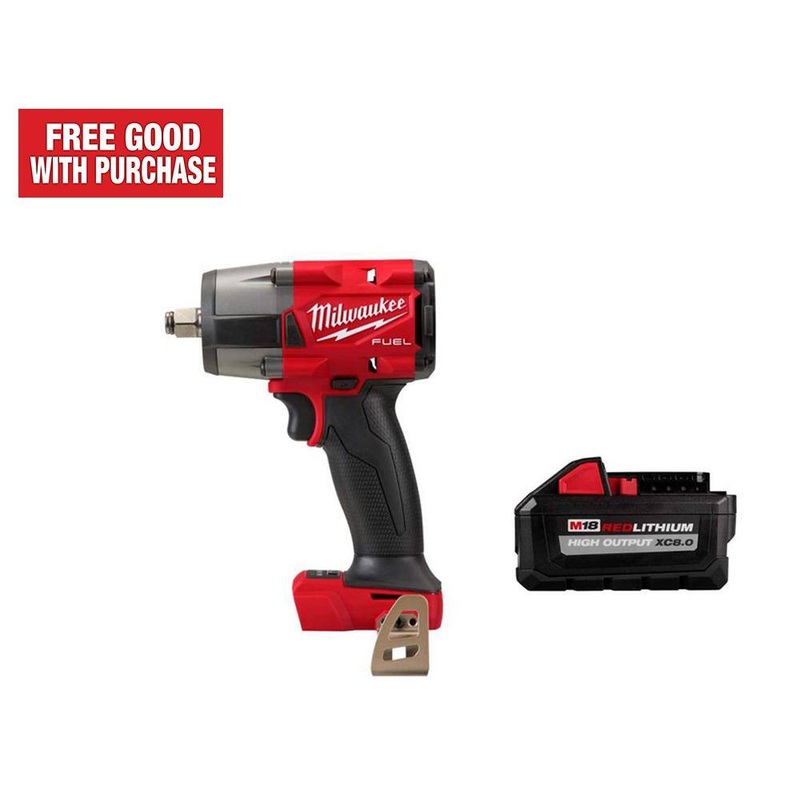 Milwaukee 2962-20-48-11-1880 M18 FUEL Gen-2 18V Lithium-Ion Brushless Cordless Mid Torque 1/2 in. Impact Wrench w/Friction Ring & (1) 8.0Ah BatteryThe MILWAUKEE M18 FUEL 1/2 Mid-Torque Impact Wrench w/ Friction Ring delivers the best power to weight ratio, most access in tight spaces, and faster removal speed. It provides 650 ft-lbs of nut-busting torque and only weighs 5.1 lbs, making it extremely versatile, capable of performing a wide variety of applications. Its POWERSTATE Brushless Motor generates the power needed to quickly perform many tasks, such as removing large bolts or lug nuts. This cordless impact wrench is the most compact in its class, giving users access to stubborn fasteners in spaces where larger impact wrenches cant fit without needing to disassemble components to reach bolts. Tri-LEDs surround the anvil to deliver brighter light with fewer shadows. 4-Mode DRIVE CONTROL offers greater precision with a range of pre-set RPM and IPM levels, selectable from a single button on the tool. By selecting Mode 4, AUTO SHUT-OFF control applies no more than 35 ft-lbs of torque for hand-tight fastening applications to prevent overtightening. Mode 4 also features Bolt Removal Control that delivers users full torque output, then decreases RPMs once the bolt is loosened to prevent fastener drops. REDLINK PLUS Intelligence ensures maximum performance, protecting the tool against overloads, over-heating, and over-discharge. The M18 REDLITHIUM battery pack (not included) fits M18 tools, delivering more work per charge and more work over the life of the pack.Friction ring (hog ring) ensures quick and easy socket changes6.0 in. L provides most access in tight spacesFaster removal speed provides increased user productivityTri-LEDs deliver high definition lighting to increase workspace visibility with less shadows4-mode DRIVE CONTROL provides greater control over output speed and power, includes auto shut-off and bolt-removal controlAuto shut-off control applies no more than 35 ft. lbs. of torque for hand-tight fastening applications to prevent overtighteningBolt removal control delivers full torque output, then decreases RPMs once the bolt is loosened to prevent fastener dropsMode 1 RPMs: 0-1,250, mode 2 RPMs: 0-1,950, mode 3 RPMs: 0-2,575, mode 4 RPMs: 0-2,575Mode 1 IPMs: 0-900, mode 2 IPMs: 0-2,100, mode 3 IPMs: 0-3,100, mode 4 IPMs: 0-3,100REDLINK PLUS intelligence ensures maximum performance and protects from overloads, heating and over-dischargeWorks in up to 69kV environmentsCompatible with all M18batteries and chargersIncludes: M18 FUEL 1/2 in. mid-torque impact wrench with friction ring, one M18 REDLITHIUM HIGH OUTPUT XC 8.0 battery packBest-in-class construction: offers long-lasting performance and the best protection against jobsite, weather and environmental conditionsDimensionsDrive Size (in.)1/2 in.Product Depth (in.)6.0 inProduct Height (in.)8.12 inProduct Width (in.)2.74 in