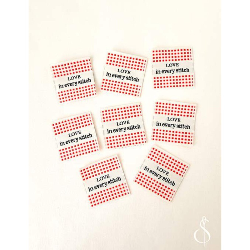 The Check Love Woven Labels by Minki Kim of Sewing Illustration add the perfect personalized touch to your quilting and sewing projects.