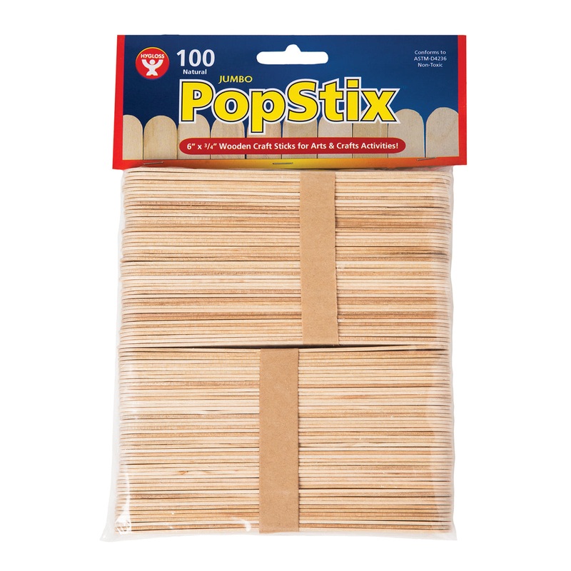 Natural Craft Wood Jumbo Popstix come in handy for various craft projects that need that natural look. Inspire children’s creativity as they learn to construct houses, jewelry boxes, picture frames and more. Craft Sticks also are great for making puppets and bookmarks. Embellish your Natural Wood Popstix craft with paint, glue, glitter and sequins.