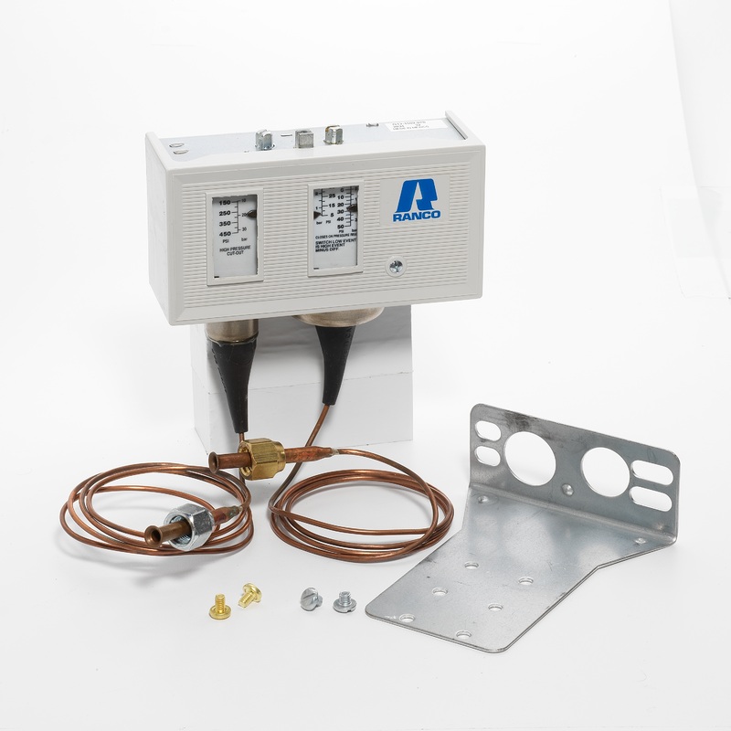 The Ranco Dual Pressure Controls combine the functions of a single high-pressure limit control and a single low-pressure control in one unit with a single pole, single throw (SPST) switch.