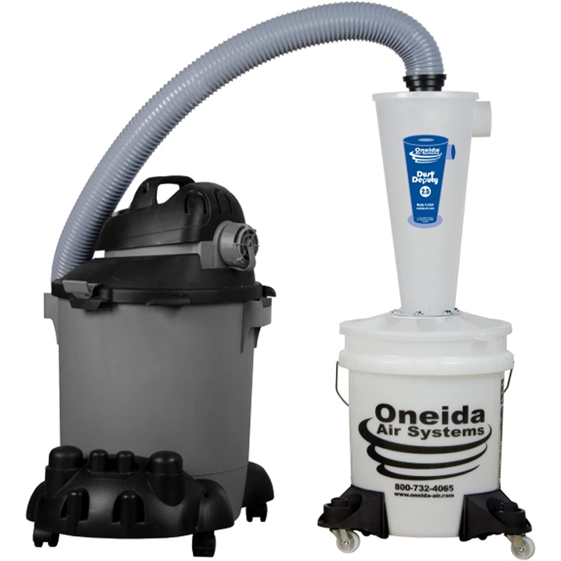 Oneida Air Systems Dust Deputy 2.5 Deluxe Cyclone Separator Kit with 10-Gallon Mobile Steel Dust Bin for Wet/Dry Shop Vacuums (DD 2.5 Deluxe 10-Gal)