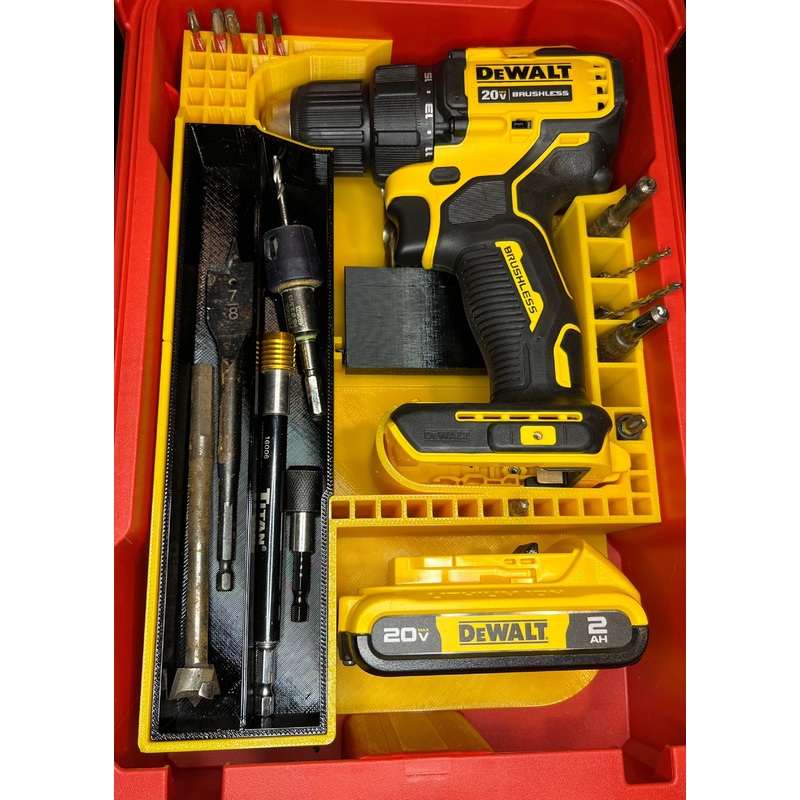 This insert will hold your DeWalt 20v max Atomic drill DCD708 and a battery of any size.