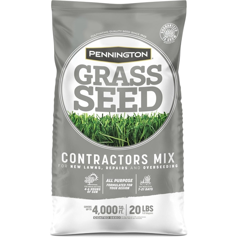 Pennington Contractors Grass Seed Mix Central 20 lbSet the course for a high-performance, professional-grade lawn with Pennington Contractors Mix. This bag contains varieties that are formulated for the Central US, so you can rest easy knowing the seed mix you buy will provide quick, dense, professional-grade results. This sun-tolerant seed should be planted in the early spring or early fall, and is optimal for areas getting 4 to 6 hours of sun. Once germinated, the grass will grow thick and full. This 20-pound bag covers up to 4,000 square feet for overseeding and 1,660 square feet for new lawns. While most grass seed companies buy their seed on the open market, we are the only major grass seed company that works directly with a network of dedicated growers. Built on decades of trust and integrity, our relationsh ips with seed growers and their families now span multiple generations. Our legacy of working directly with farmers to bring you the finest grass seed possible helps ensure their success and ours. At Pennington, we know our seed and the farmers who grow it. From field to final product, thats the Pennington way.Ideal for new lawns, overseeding and lawn repairProvides quick, dense, professional-grade resultsAll-purpose grass seed mix formulated and mixed specifically for the region of the country where it is soldPerforms well in areas that receive 4 to 6 hours of sun dailySee results in 7 to 21 daysPennington Contractors Grass Seed Mix is guaranteed to growThis bag covers up to 4,000 sq. ft.Contains grass seed varieties that are formulated for the Central USProduct informationPlant or Animal Product TypeGrass SeedsBrandPenningtonSpecial FeatureContractors Grass Seed MixExpected Blooming PeriodFall, SpringItem Weight20 PoundsSunlight Exposure4-6 Hours of SunUnit Count320.0 OunceExpected Planting PeriodSpringMoisture NeedsModerate WateringUPC021496297477Product Dimensions3 x 15 x 23 inchesItem Weight20 poundsManufacturerCentral Garden & PetCountry of OriginUSAItem model number100516637
