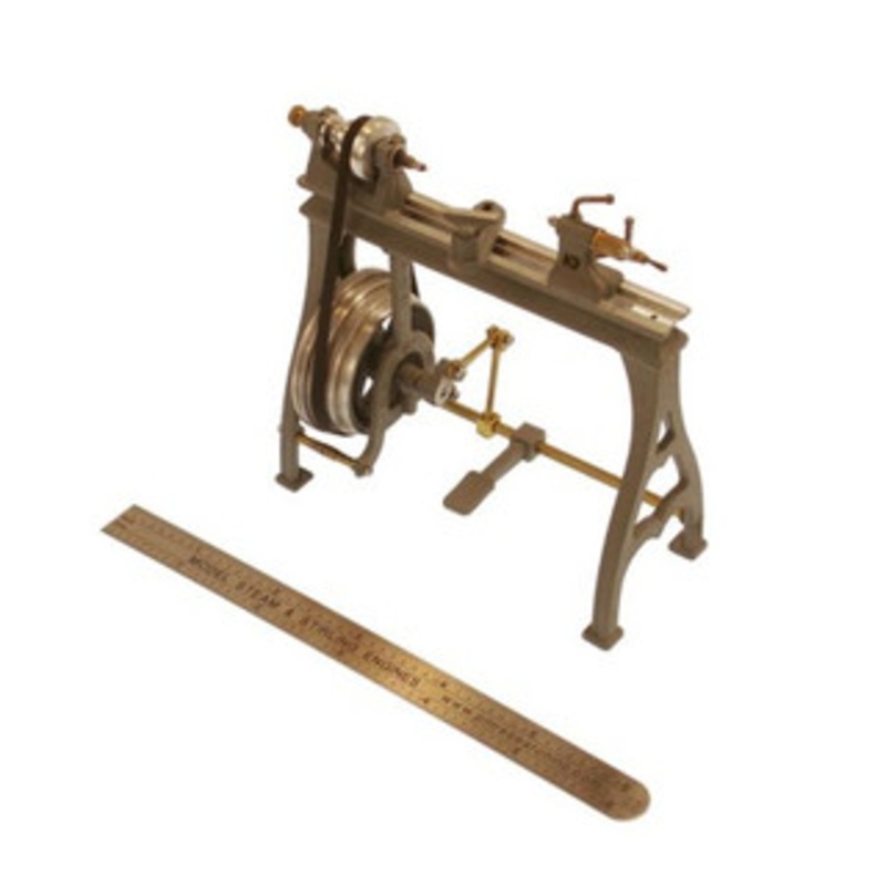 No engine? No power plant? No problem! In the 1890s, foot power wasall that was needed to drive the Chas. A Strelinger #781 Reed FootLathe. Of course, ours is twice as cute and 1/12 the size and runs mostlyon finger power. As always, you can hook it up to your line shaft powerif you prefer. The wood lathe measures 4 long and 4-1/2 high.