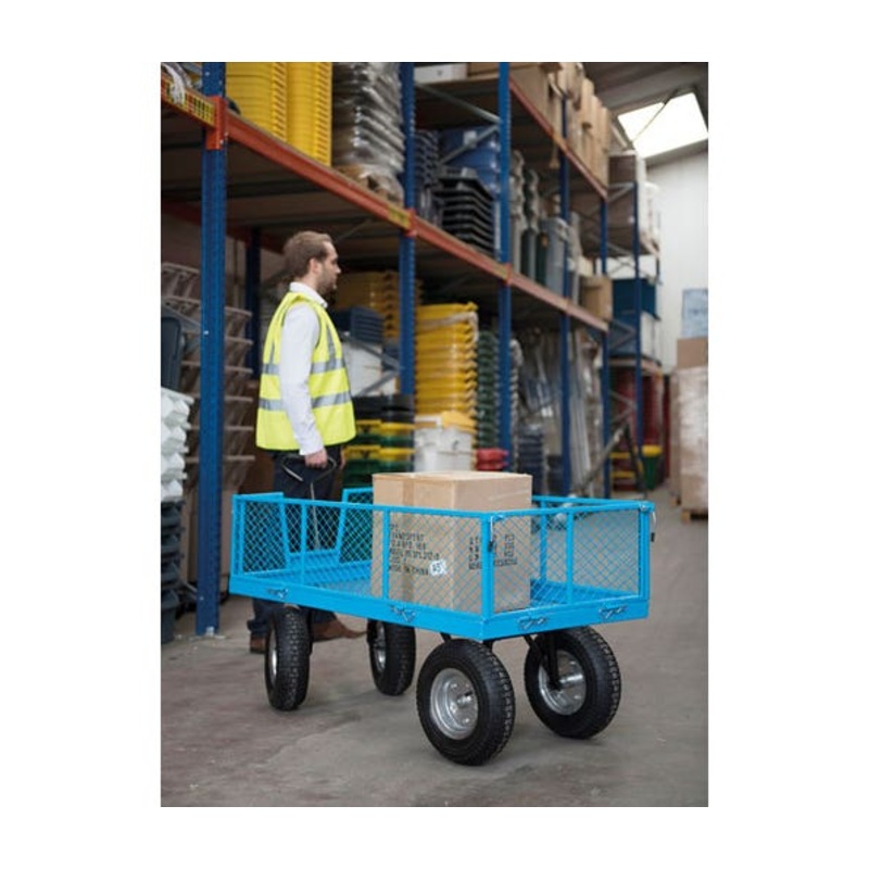 Mesh base, sides & ends Brand:Pro-Source Manufacturer Part Number:TI201R Features & Benefits: Heavy-duty load capacity: 400kg. Available in a variety of options with mesh or plywood base. Mobile on REACH Compliant, 340mm pneumatic steel centred wheels. Pla