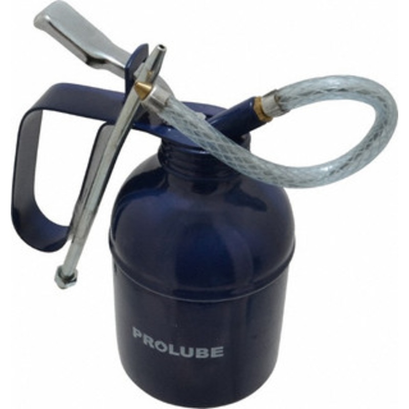 Prolube 12 oz. Lever Type Oil Can 12oz Features:400 mL Capcity, 7" Long Flexible Spout, Lever-Type OilerBrass Pump, Steel Body, Powder Coated Spout Type Flexible Container Size 12 oz. Material Steel Additional Information Heavy-Gage Steel & Brass Pump