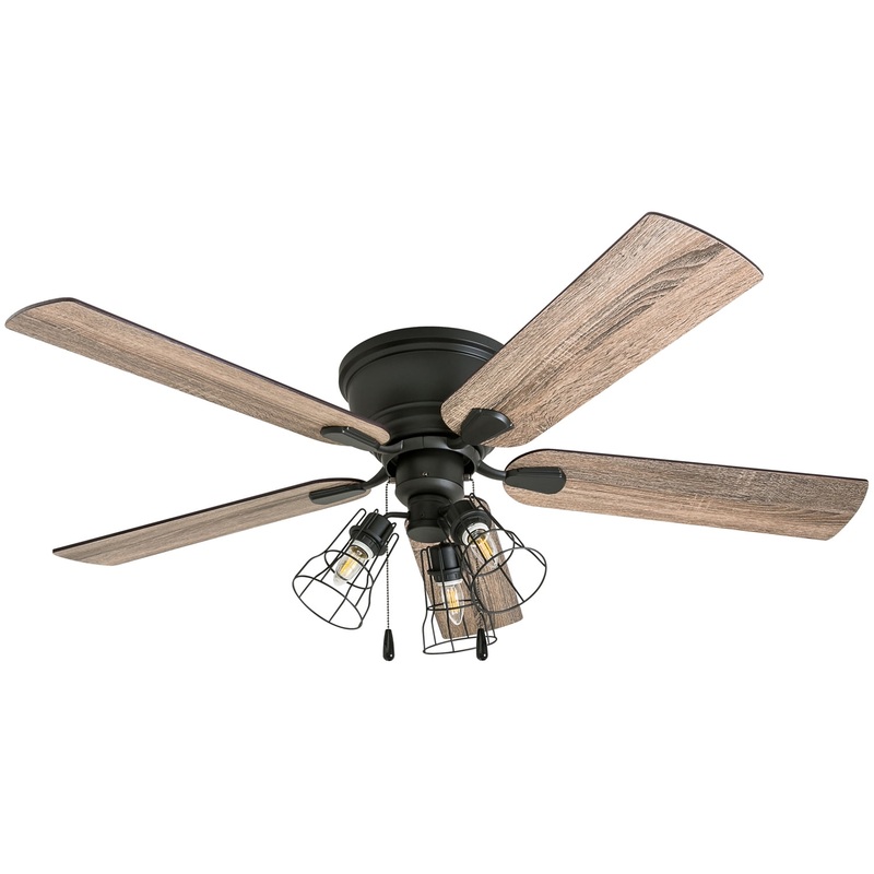 Prominence Home Lindero 52 In. Bronze Indoor Hugger Ceiling FanEach ceiling fan is designed with you in mind. We want to bring you high quality paired with elite performance and aesthetics ready to freshen up your space. Let us help you say Welcome home. Whatever your needs, we are ready to meet and exceed! EDISON STYLE BULBS & DOWNRODS INCLUDED: Cant get enough of the Edison style bulb? Neither can we! Three E26/B10 Edison style blubs are included along with both a 4 and a 12 downrod. (Light Bulb Data (data per bulb): 4.5 W (40 watt equivalent), 450 Lumens, 20,000 hour bulb life, E26 Base, B10 Shape, 120 Volt, 80 CRI, 2700 color temperature) TWO FANS IN ONE: Feature the perfect finish match with our reversible ceiling fan blades, giving you both a traditional option and a trendy option to take your pick from! EASY TO USE: Pull Chains included for quick and easy on and off adjustments. This fan is also compatible with universal ceiling fan remote controls.RUSTIC FARMHOUSE STYLE: This farm house hugger ceiling fan houses a soft matte finish pairing perfectly with the tones and pops of barnwood and driftwood in the blades. The farmhouse theme offers such a neat aesthetic, bringing a calming warmth, yet rustic depth into the comfort of your home, and what better way to introduce that into your home than through the look of this flush mount ceiling fan. We cant get enough of this barnwood look ourselves. Who says you cant bring some of the rustic chic ambiance into your living space!?LARGE TO MEDIUM SPACES: Having a blade span of 52 inches, this fan is perfect for medium to large rooms.TRI MOUNT COMPATIBLE: Hanging has never been easier! Enjoy the dynamic hanging capabilities of a multiposition ceiling fan. This fan can be hung low profile where more walk through space is required, standard with a 4 downrod (included) or on angled ceilings (angle bracket sold separately)